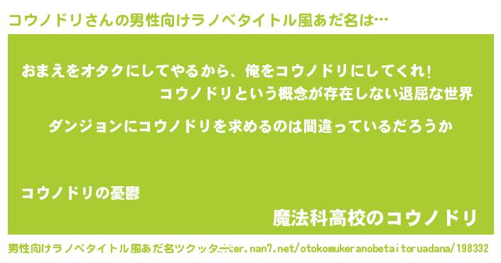 | 女子向けラノベタイトル風あだ名 | 『コウノドリは平凡を望む』 |