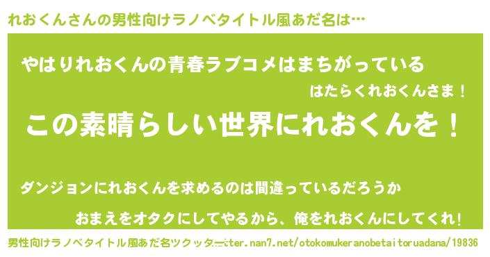 | 意味不明あだ名 | 『住所不定無職れおくん(79歳)』 |