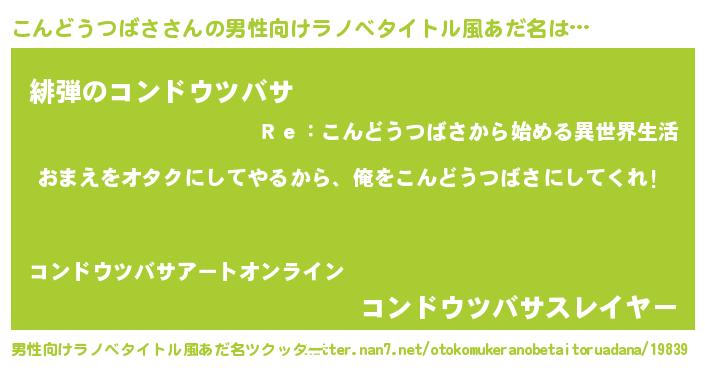 | 女子向けラノベタイトル風あだ名 | 『こんどうつばさ恋絵巻』 |