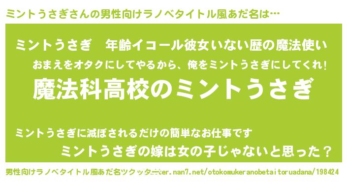 | 女子向けラノベタイトル風あだ名 | 『ミントうさぎなんてお断りですっ。』 |