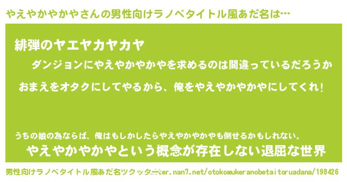 | 女子向けラノベタイトル風あだ名 | 『やえやかやかや恋絵巻』 |