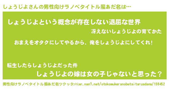 | 女子向けラノベタイトル風あだ名 | 『しょうじよ夫妻のなれそめ』 |