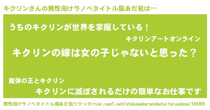 | 胡散臭い通販商品みたいなあだ名 | 『全米が絶賛したサプリメント…その名も「キクリン」』 |