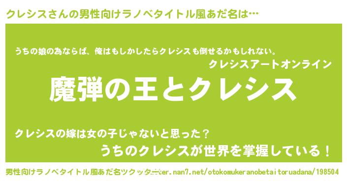 | 意味不明あだ名 | 『住所不定無職クレシス(7歳)』 |