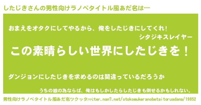 | 意味不明あだ名 | 『住所不定無職したじき(14歳)』 |