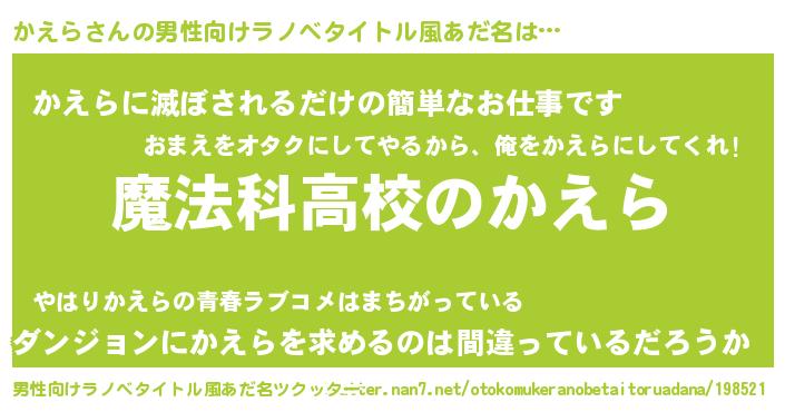 | 意味不明あだ名 | 『自称かえら』『とにかく怪しいかえら』 |