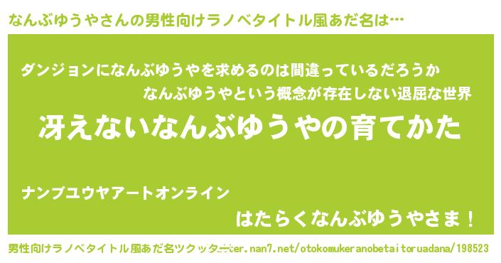 | 女子向けラノベタイトル風あだ名 | 『男装なんぶゆうやの憂鬱な任務』 |