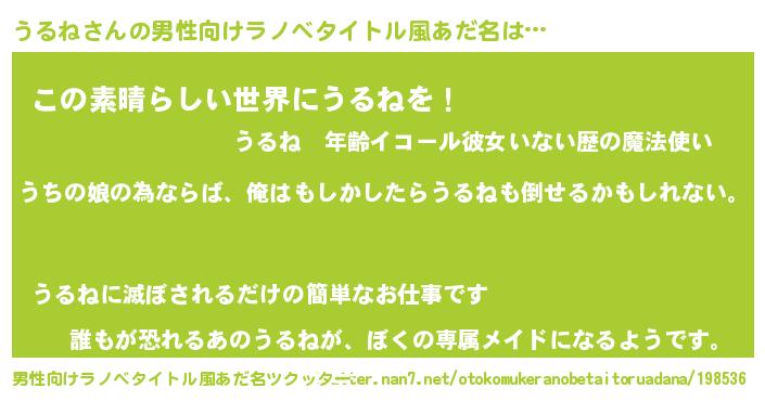 | ヘコむあだ名 | 『酢こんぶ』『うるね(笑)』 |