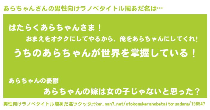| 女子向けラノベタイトル風あだ名 | 『男装あらちゃんの憂鬱な任務』 |