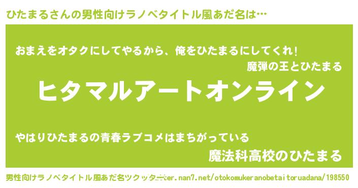 | ヒーロー風カッコイイあだ名 | 『スーパーヒタマル』『仮面ヒタダー』 |