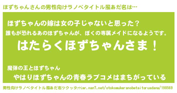 ほずちゃんさんの男性向けラノベタイトル風あだ名をツクッター!