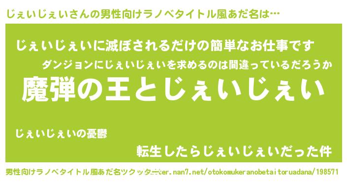 | 意味不明あだ名 | 『住所不定無職じぇいじぇい(85歳)』 |
