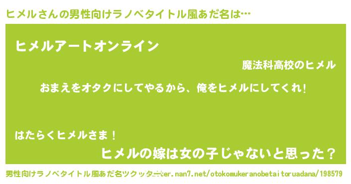 | 女子向けラノベタイトル風あだ名 | 『ヒメル夫妻のなれそめ』 |