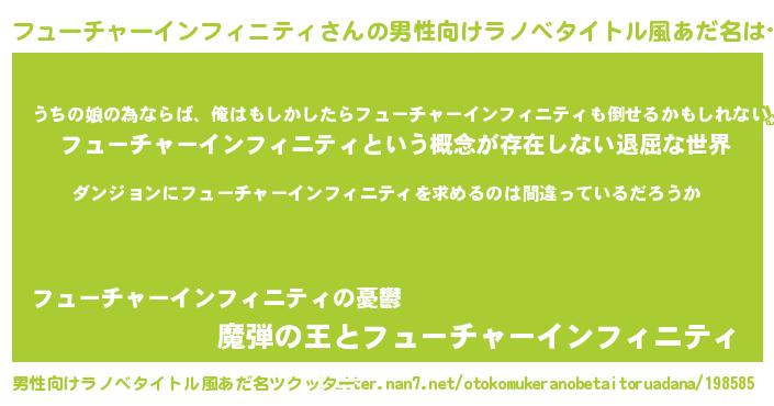 | 女子向けラノベタイトル風あだ名 | 『フューチャーインフィニティは平凡を望む』 |