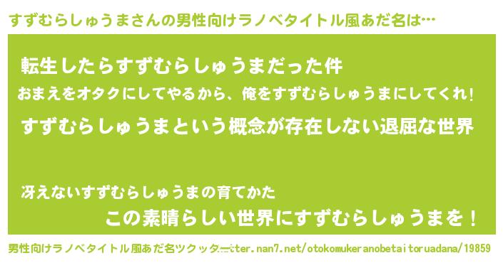 すずむらしゅうまさんの男性向けラノベタイトル風あだ名をツクッター!