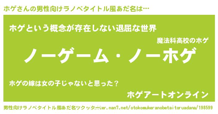 | 女子向けラノベタイトル風あだ名 | 『死神ホゲの再婚』『ホゲ姫と円卓の騎士』 |
