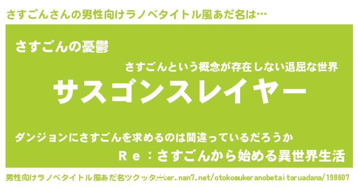 | 胡散臭い通販商品みたいなあだ名 | 『必ず成功する霊験あらたかなお札…その名も「さすごん」』 |