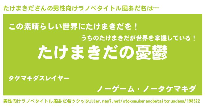 | 女子向けラノベタイトル風あだ名 | 『(仮)たけまきだのやんごとなき事情』 |