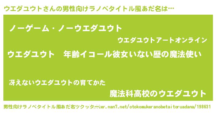 | 女子向けラノベタイトル風あだ名 | 『ウエダユウトの玉の輿計画!』 |