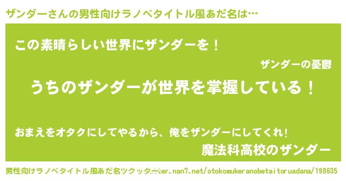 | 胡散臭い通販商品みたいなあだ名 | 『あなたにだけ特別に提供する100年もののヴィンテージワイン…その名も「ザンダー」』 |