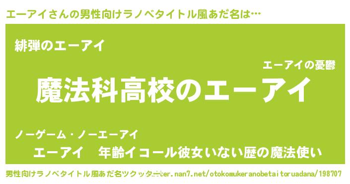| ヒーロー風カッコイイあだ名 | 『超時空戦士エーアイ』『天弓騎士エー』 |