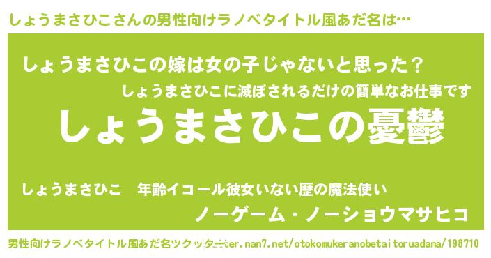 | 女子向けラノベタイトル風あだ名 | 『(仮)しょうまさひこのやんごとなき事情』 |