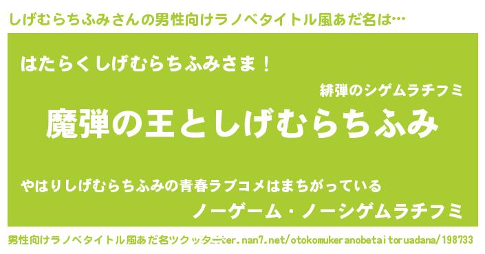 | 女子向けラノベタイトル風あだ名 | 『乙女ゲームの破滅フラグしかない悪役しげむらちふみに転生してしまった…』 |