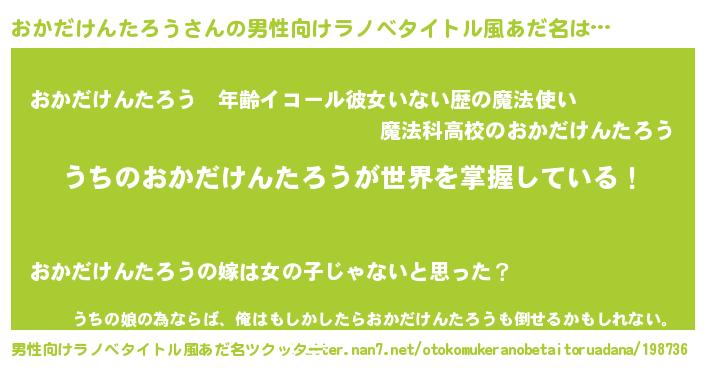 | 女子向けラノベタイトル風あだ名 | 『男装おかだけんたろうの憂鬱な任務』 |