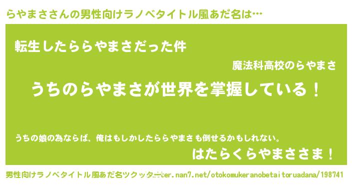 | 意味不明あだ名 | 『つくし科らやまさ属』『自称らやまさ』 |