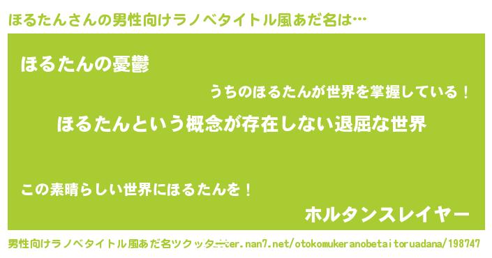 | 女子向けラノベタイトル風あだ名 | 『ほるたんの契約王妃』 |