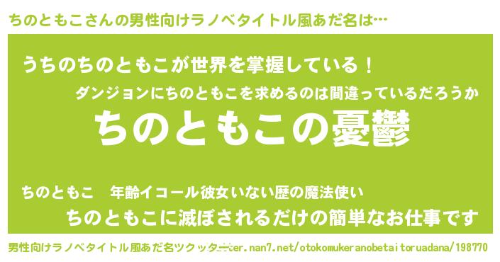 | 女子向けラノベタイトル風あだ名 | 『(仮)ちのともこのやんごとなき事情』 |