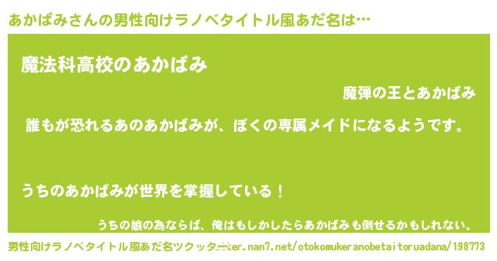| ヘコむあだ名 | 『あかばみ(震え声)』『豆乳』 |