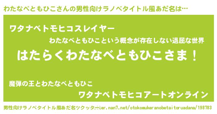 | 胡散臭い通販商品みたいなあだ名 | 『必ず成功する水晶球…その名も「わたなべともひこ」』 |