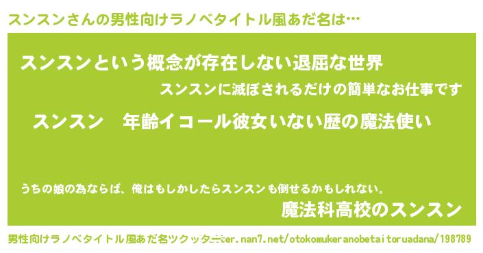 | 胡散臭い通販商品みたいなあだ名 | 『前代未聞の健康食品…その名も「スンスン」』 |