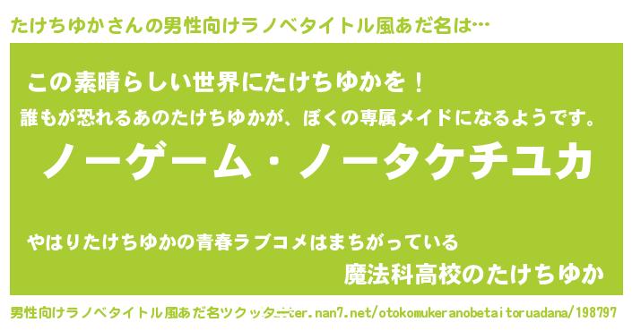 | 女子向けラノベタイトル風あだ名 | 『死神たけちゆかの再婚』 |