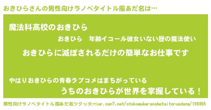 | ヘコむあだ名 | 『なまこ酢』『おきひら(苦笑)』 |