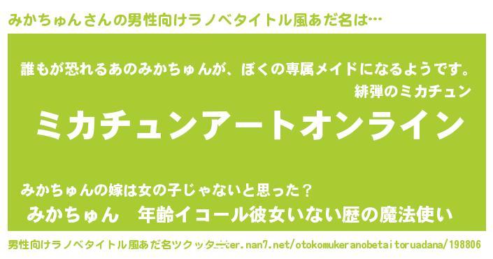 | 女子向けラノベタイトル風あだ名 | 『みかちゅん姫と円卓の騎士』 |