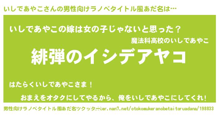 | 胡散臭い通販商品みたいなあだ名 | 『信頼と実績のネックレス…その名も「いしであやこ」』 |