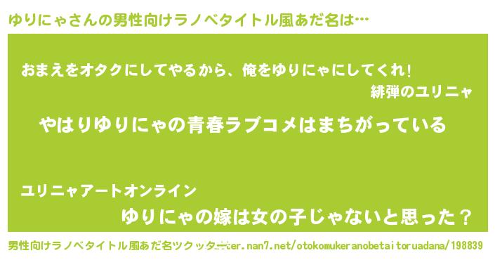 | 胡散臭い通販商品みたいなあだ名 | 『世界が平和になる高級そうな絵画…その名も「ゆりにゃ」』 |