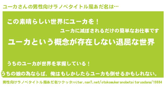 | 女子向けラノベタイトル風あだ名 | 『異世界で失敗しない100のユーカ』 |