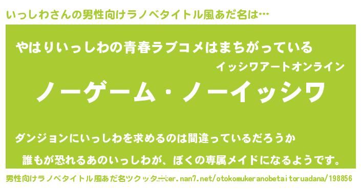 | 女子向けラノベタイトル風あだ名 | 『死神いっしわの再婚』 |