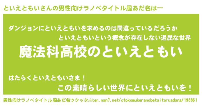 | 女子向けラノベタイトル風あだ名 | 『といえともいなんてお断りですっ。』 |