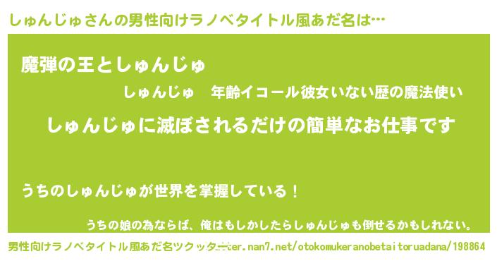 | 胡散臭い通販商品みたいなあだ名 | 『あなたにだけ特別に提供する限定10本のレアな日本酒…その名も「しゅんじゅ」』 |