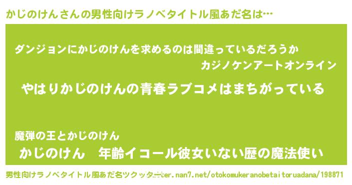 | 女子向けラノベタイトル風あだ名 | 『かじのけんの雑貨屋さん』 |
