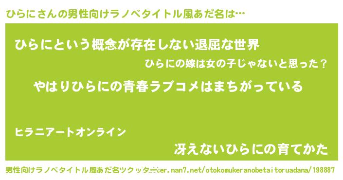 | 女子向けラノベタイトル風あだ名 | 『ひらにの雑貨屋さん』 |