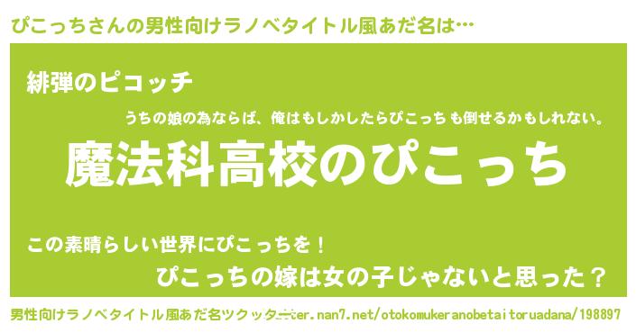 | 女子向けラノベタイトル風あだ名 | 『ぴこっちなんてお断りですっ。』 |