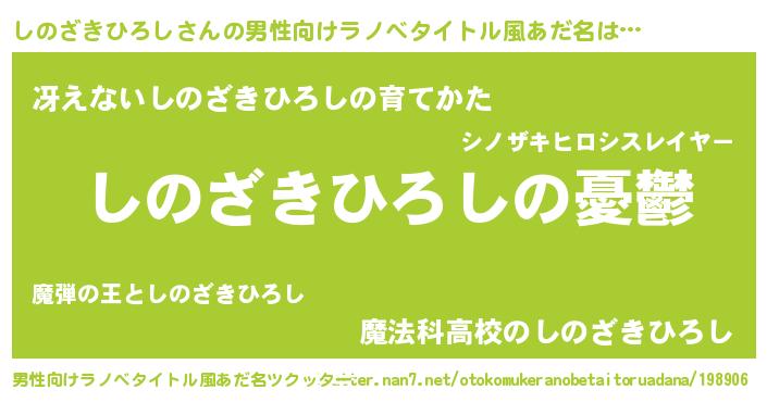 | 女子向けラノベタイトル風あだ名 | 『しのざきひろし姫と円卓の騎士』 |