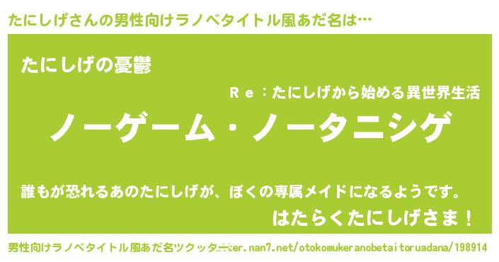 たにしげさんの男性向けラノベタイトル風あだ名をツクッター!