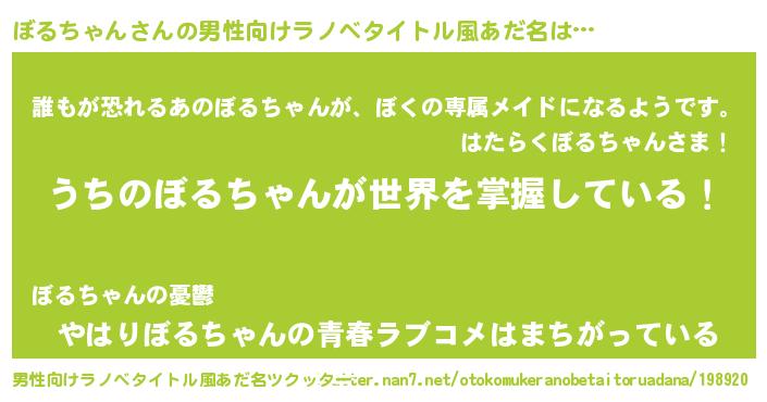 | 意味不明あだ名 | 『永久保存ぼるちゃん』『自称ぼるちゃん』 |