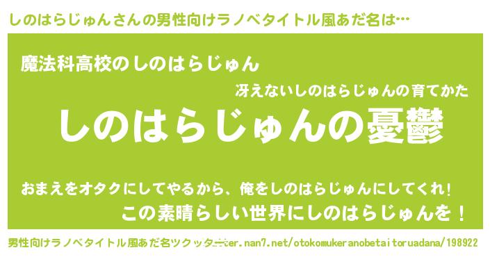 | 女子向けラノベタイトル風あだ名 | 『(仮)しのはらじゅんのやんごとなき事情』 |